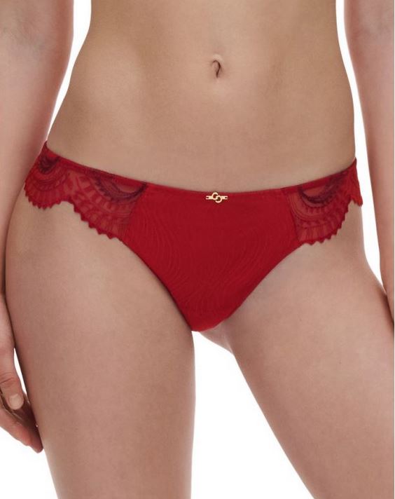 Pour compléter les soutiens-gorge, la collection Mystic Dream propose une gamme de bas tout aussi séduisante dans le coloris Rouge Passion/Aubergine. Cette teinte unique, mélange de passion et de mystère, habille des culottes, strings, et shortys conçus pour allier confort et séduction.
