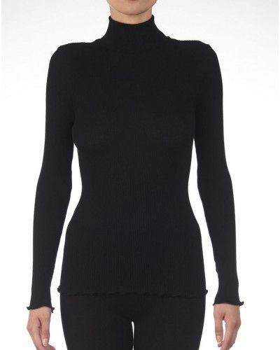 Top de canalé con cuello alto lana y seda en encaje leavers  Oscalito 7611 (Negro)