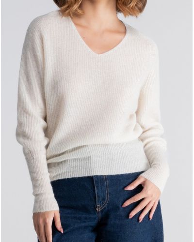 Blusa acanalada con cuello en V borde de satén de lana y seda Oscalito 6341 (Champagne)