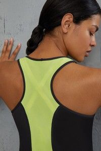 Enfin la collection The Sweater, qui propose un look sweater branché. Le soutien-gorge est réalisé dans une maille jersey douce et respirante. La bretelle se porte droite ou croisée. La maille de couleur vive entre les seins et les galons fluo apportent la touche ultime à votre look sport et branché.
