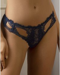 Ce mini string Lise Charmel Soir de Venise est un taille basse échancré. Le devant est en dentelle et le dos en tulle. Les motifs brodés sont ajourés.