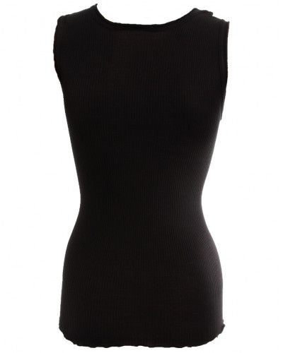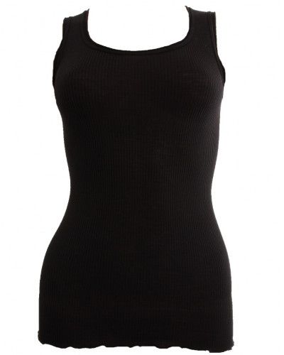 Ce débardeur Oscalito est en 100% fil d'Ecosse et propose une petite dentelle en Leavers. (70% laine, 30% soie)